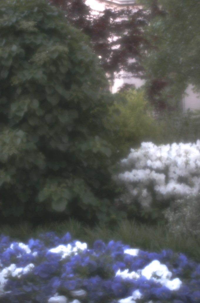 This example demonstrates that by uniformly rotating a SLR camera len's focus ring during image integration, we can capture scenes with a large depth of field while using a large aperture to ensure high SNR.