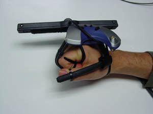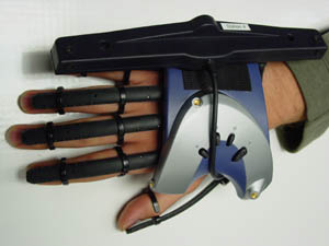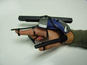 IS900 tracker is mounted on the glove for precise 6DOF tracking throughout