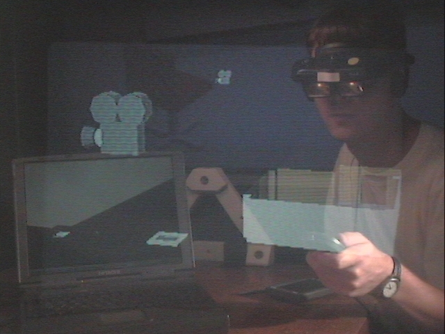 machines. On the left is a snapshot of the current system, taken with a camera looking through a head mounted display.