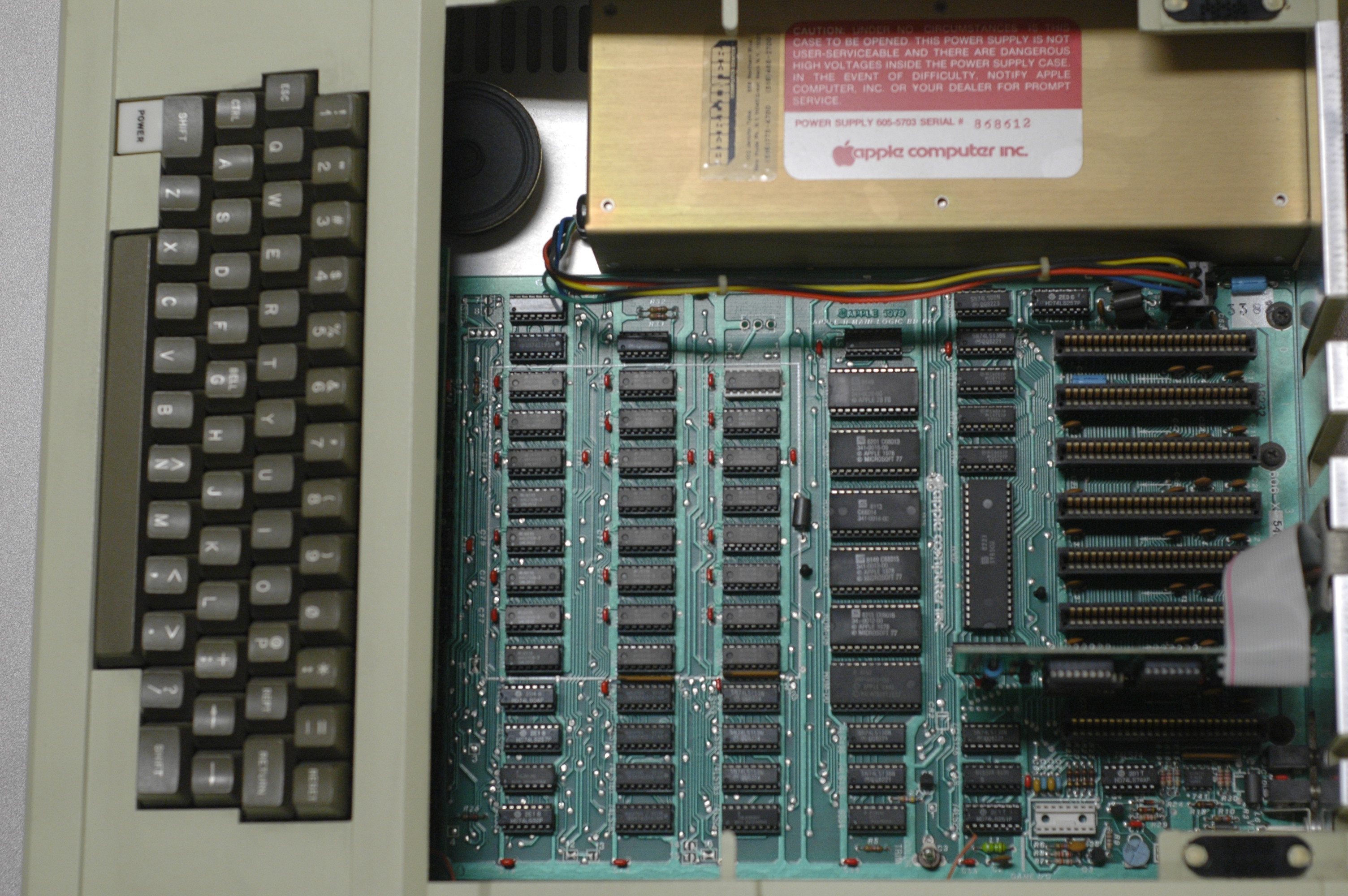 The Apple II was one of the first really successful personal computers. Designed by Steve Wozniak ("Woz") and first introduced in 1977, it really took off in 1978 when the 140K Disk II 5.25-inch floppy drive was introduced, followed by VisiCalc, the first spreadsheet program.