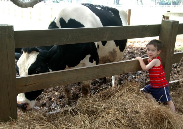 20070708-6866 Kyle and a cow at the farm