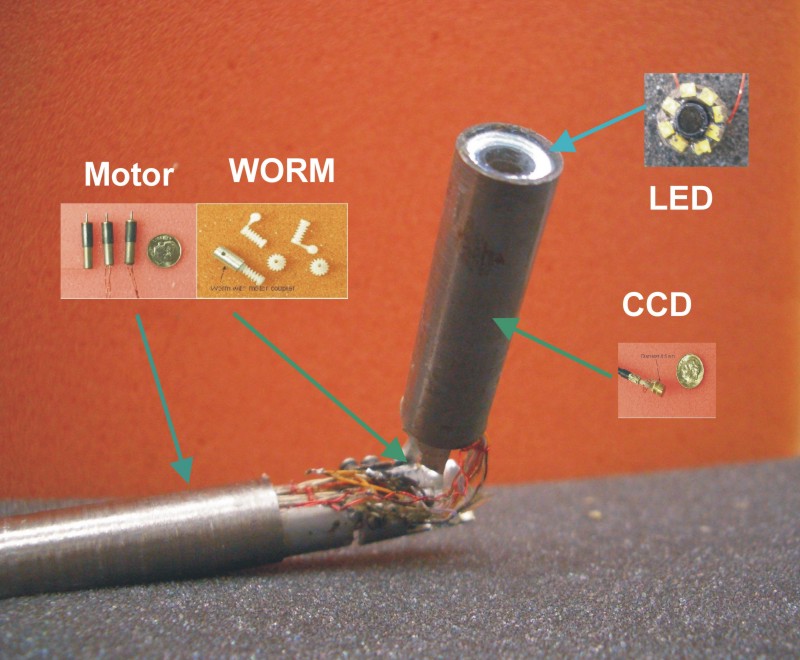 pan/tilt endoscopic camera with an integrated light source. The