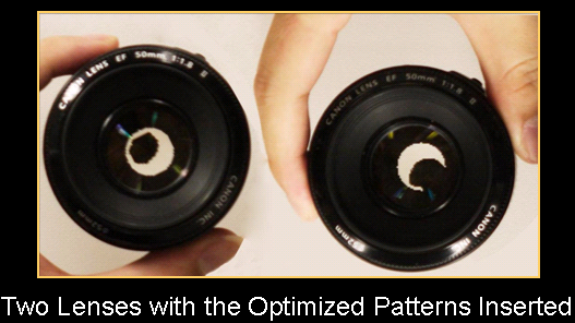 - Most existing depth from defocus (DFD) methods assume pillbox or Gaussian apertures. - To achieve a reliable depth map, people usually need to capture two (or more) images with different defocus, (by using different aperture pattern/size, moving sensor, moving object, or changing focus). //For single-image DFD method, the estimation largely relies on image prior. A nice work is done by Levin et al. in Siggraph07. Our paper focuses on the typical DFD method with two input images. |