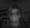 The results obtained for runs using the 40 hidden node feature extractor are unsurprising based on an analysis of the images reconstructed by the network at its output layer: they are all virtually black, with gray values clustered around the 0 to 10 range (of 255 possible gray levels) -- the network did not generalize at all after training. Furthermore, hidden unit representations of the 40 unit feature extractor reveal a tendency to represent images of specific subjects rather than general face images. One possible explanation is that each hidden unit was particularly tuned to one of the 40 images in the training set. Some of the examples below are typical of the hidden unit representations seen in this network: