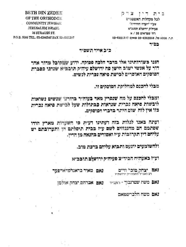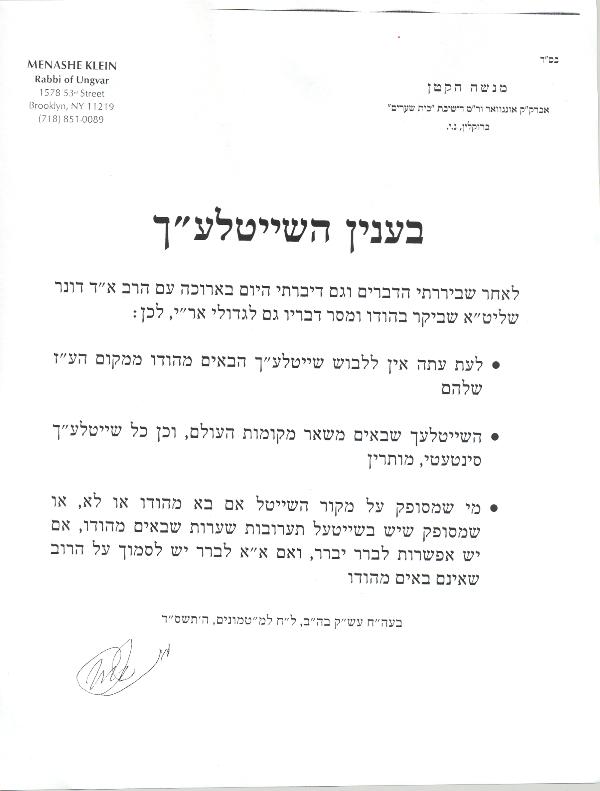There are my collection of Documents that I've collected in relation to the current sheitel shailot that are going around.