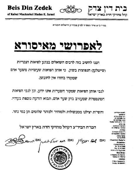 This is an announcement of the Badatz Eidah Chareidit