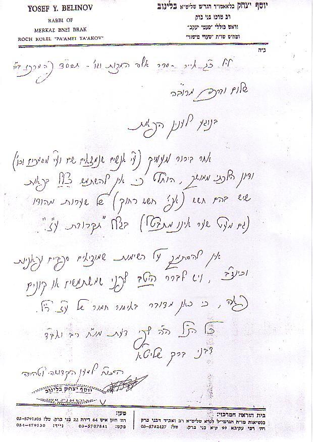 Edited June 24:This is Rav Belsky's letter to Rav Elyashiv (much cleaner version than before)