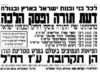 This is the announcement from Rav Yosef Belinov, the rav of Merkaz Bnei Brak