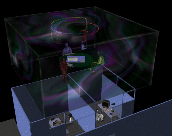 shows Bob Ensor's view of a virtual meeting room that he is sharing with