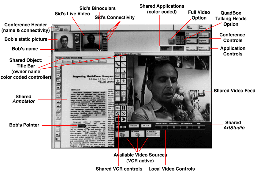 conferencing system at Bell Labs which used the model of persistent virtual