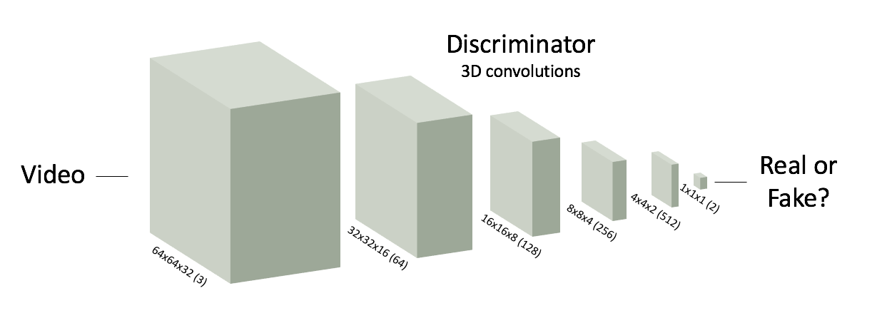 use a deep spatiotemporal convolutional network for the discriminator, visualized here.