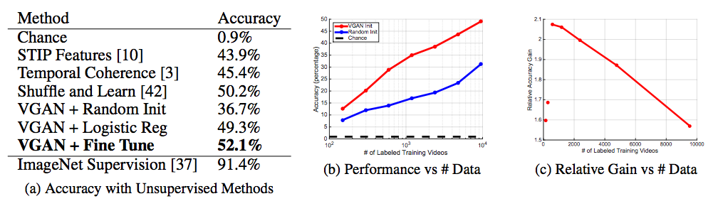 representations. For example, we can train generators on a large repository of unlabeled videos, then fine-tune the discriminator on a small